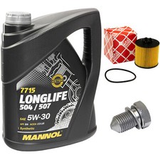 Motoröl Set 5W30 5 Liter + Ölfilter Febi + Ablassschraube für Audi Seat Skoda VW